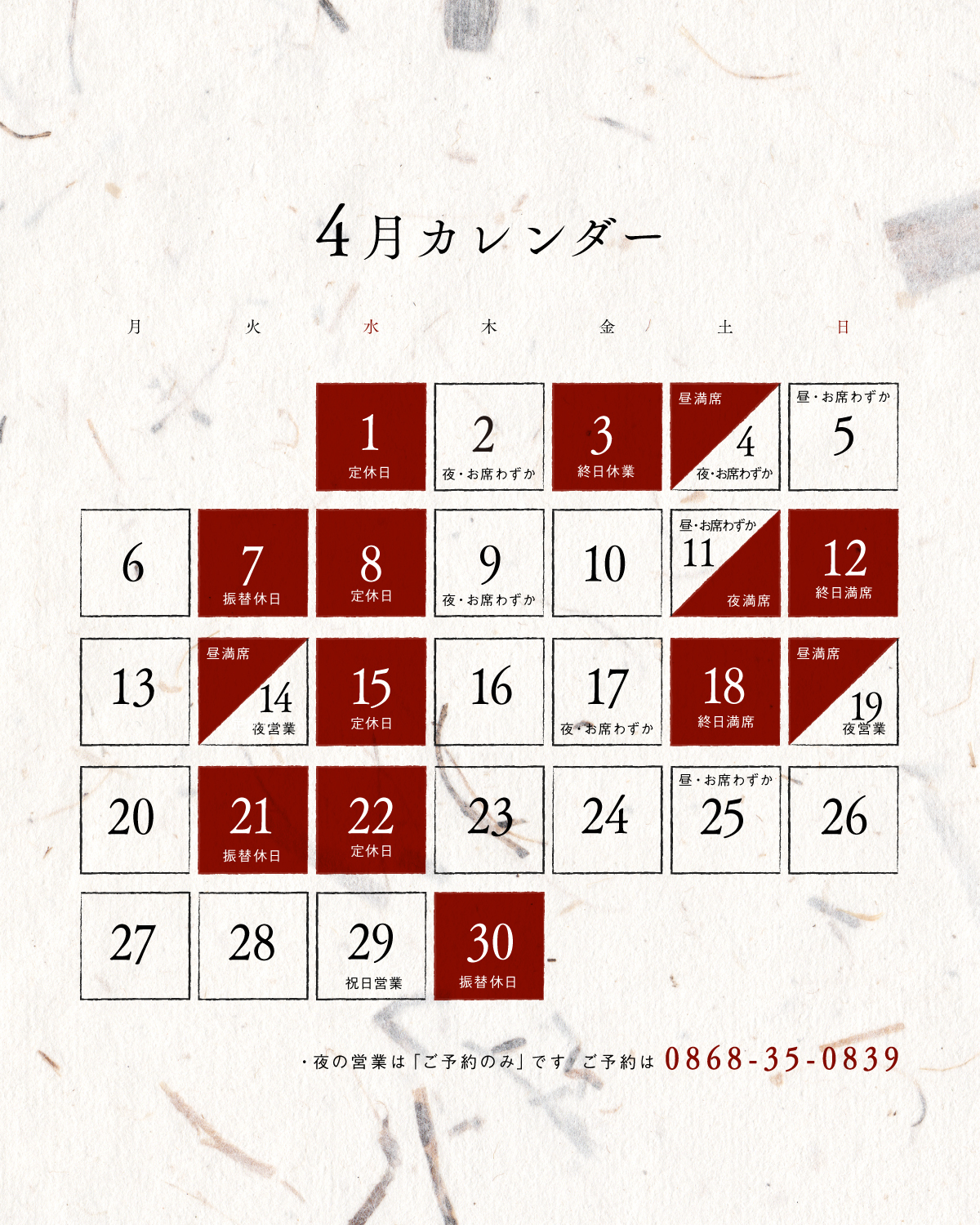 ※夜は前営業日17:00までの完全要予約(コースの場合は2営業日前まで)