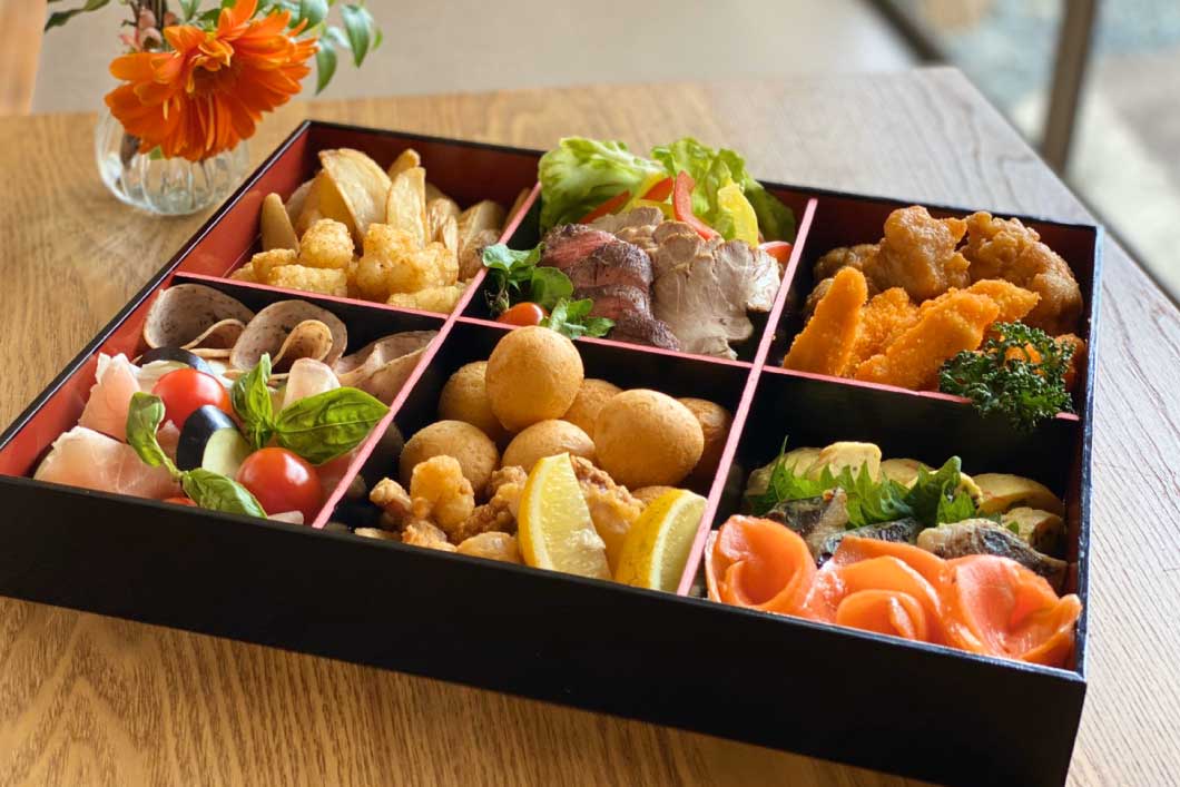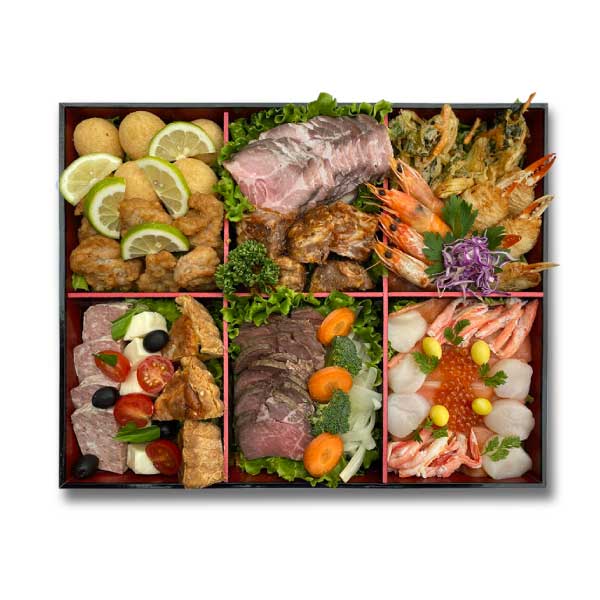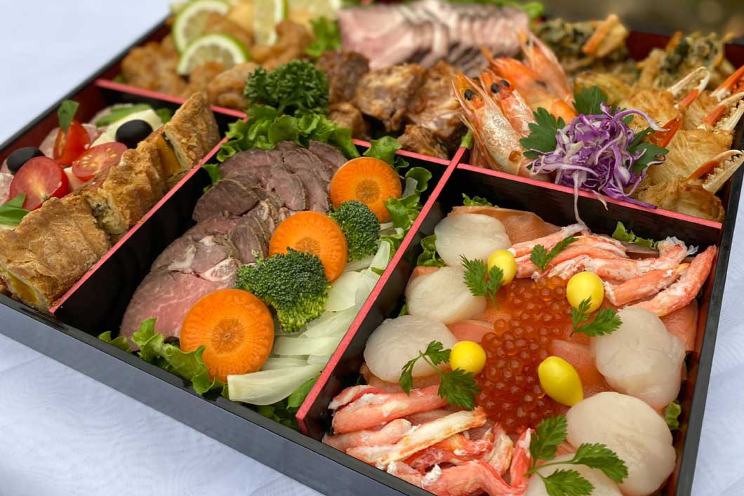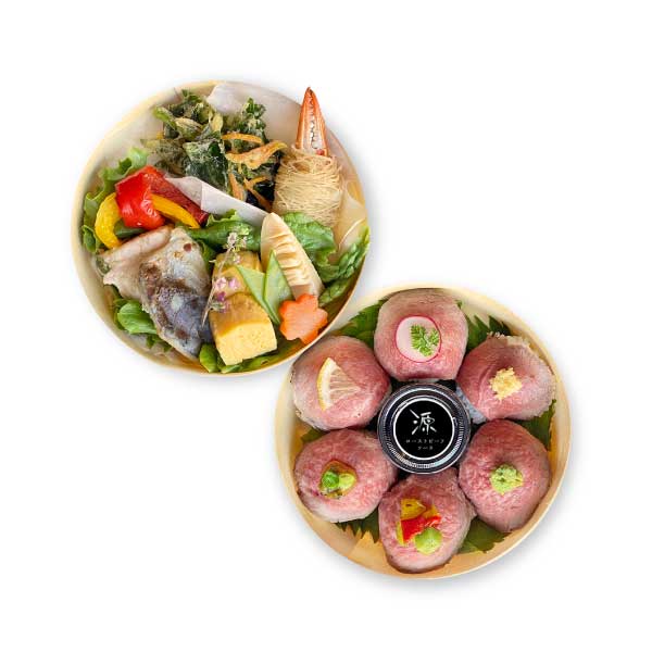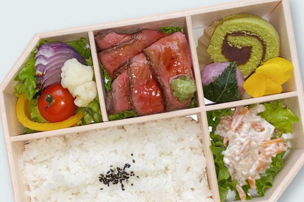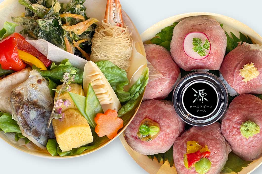 ローストビーフの手鞠寿司と季節のおいしいもの