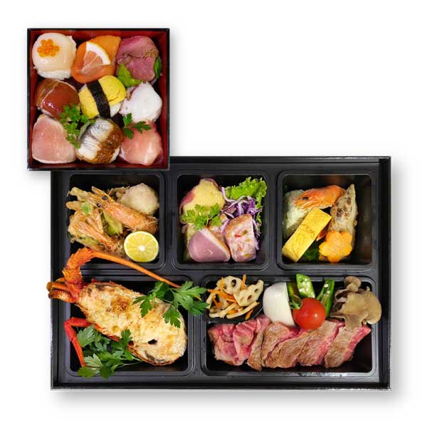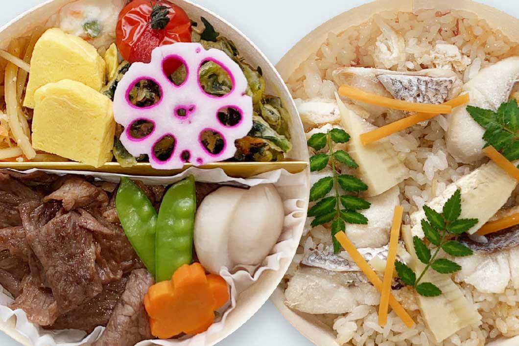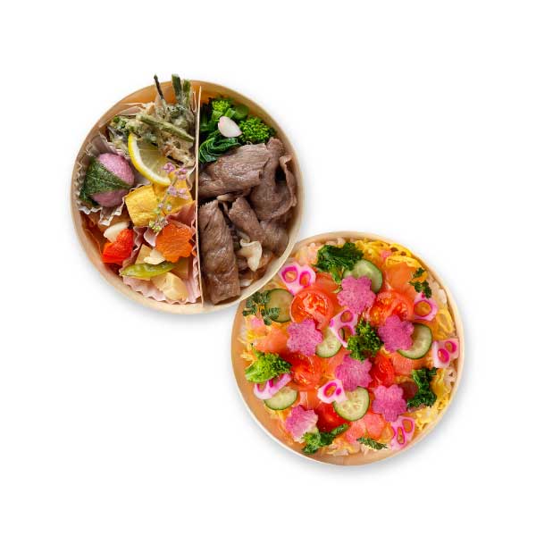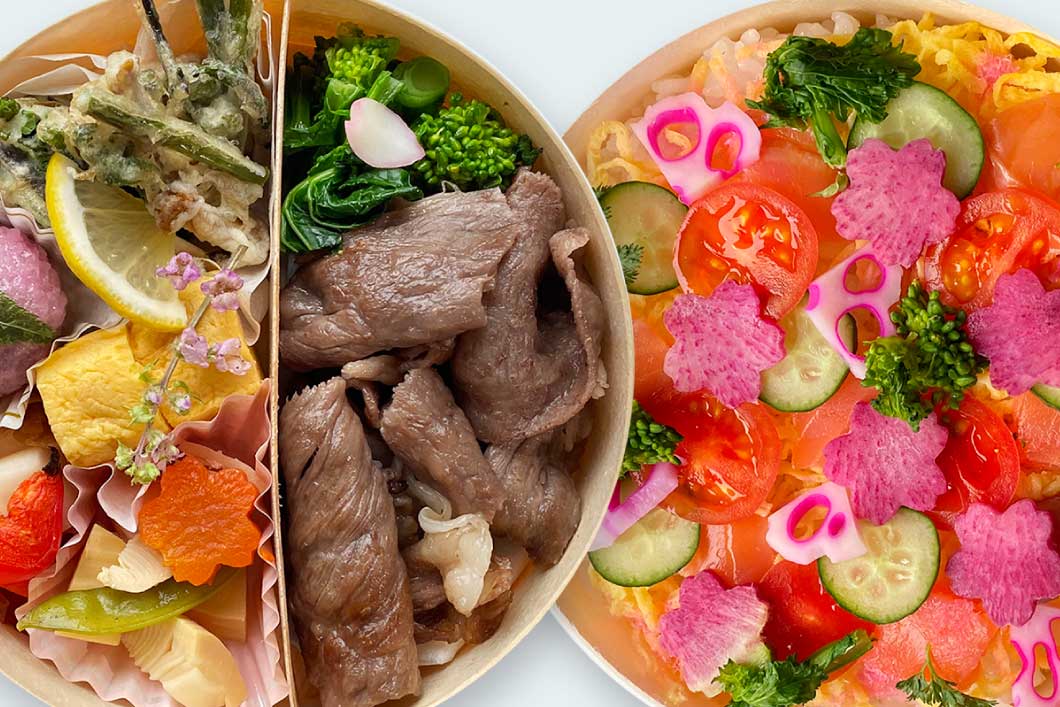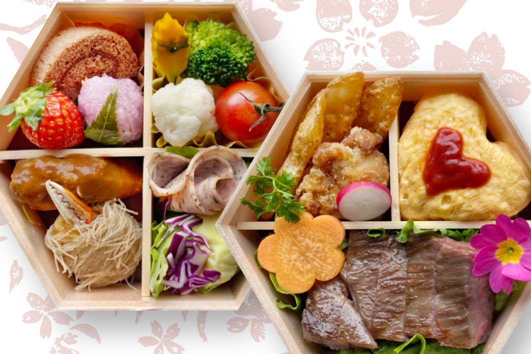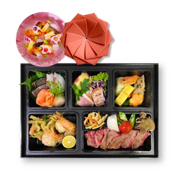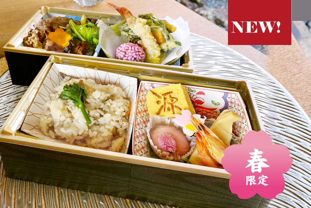 奈義和牛のすき焼き、春の炊き込みご飯の、豪華な春弁当