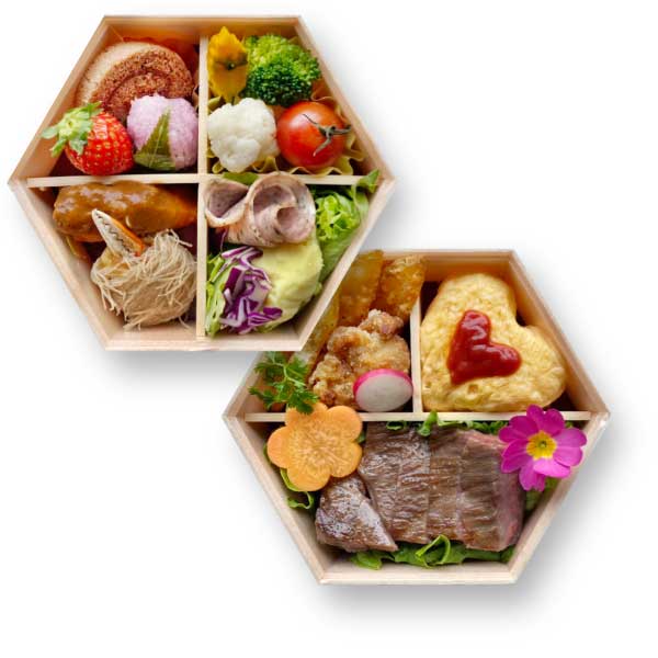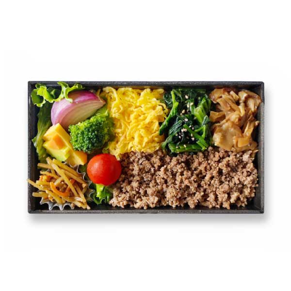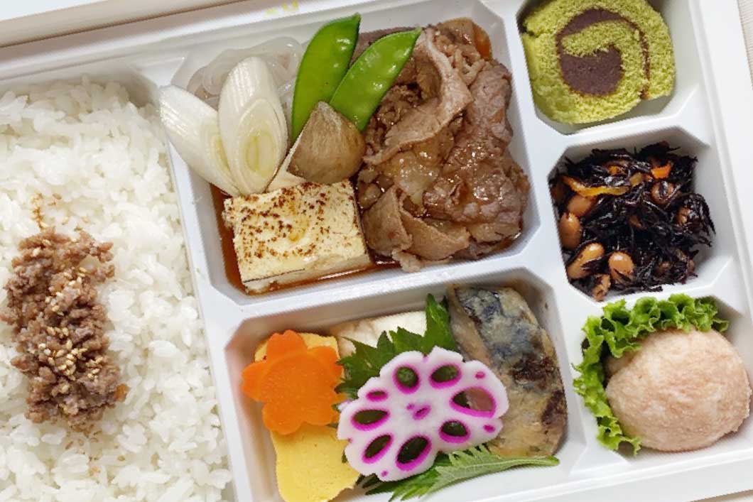 牛そぼろと椎茸の旨煮や錦糸卵で